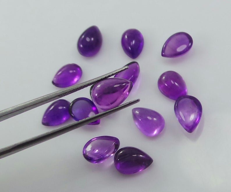 [AAA] Cabochon Amethyst Pear Shape Gemstone Calibrated Sizes DIY Jewelry