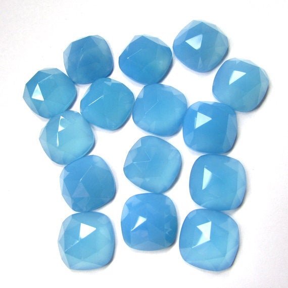 Faceted Blue Chalcedony Cushion Shape Jewelry Making Cut Gemstone