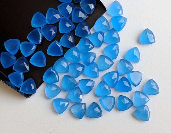 Faceted Natural Blue Chalcedony Trillion Shape Cut Gemstone All Calibrated Size