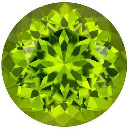 Round-facet strong-green natural Burmese Peridot gemstones available in multiple sizes from 1mm to 10mm in diameter.